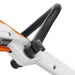 Thanks to the soft handle with lever lock function and lever, the user always has the cordless brushcutter safely under control. The eye for wall mounting means that the FSA can be safely stored in a compact space.